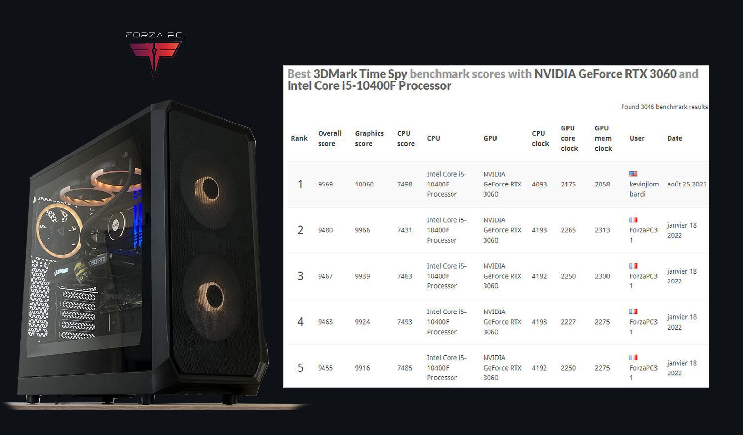 BENCHMARK DE L’ARES AVEC UNE 3060 SUR 3dMARK : IL EST TOP 1 FRANCE ET TOP 2 MONDIAL !